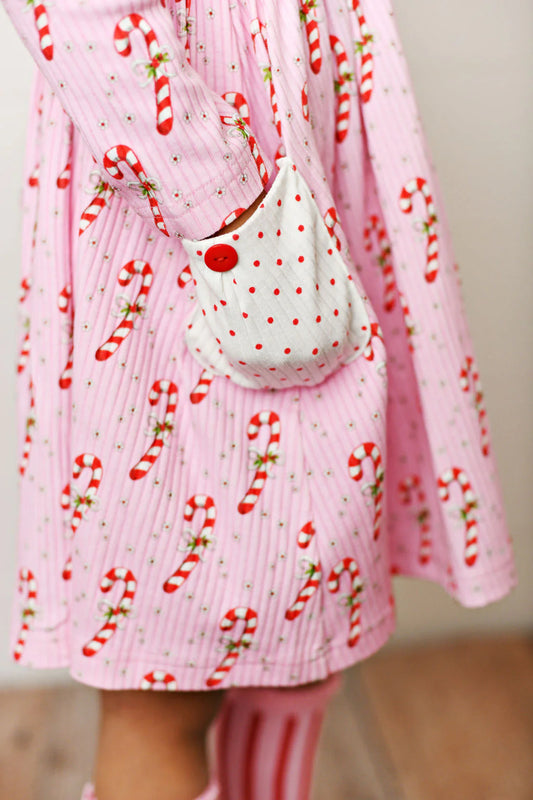 SB CANDY CANE EYELET POCKET DRESS